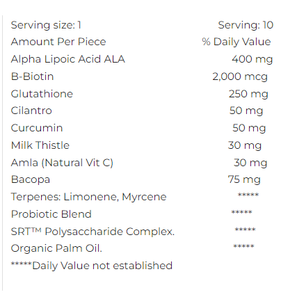 NeuroPurge™ – a brain detox system that utilizes ALA, glutathione, and more, along with probiotics and SRT™ for sustained release. The Andy Cutler Chelation Protocol is designed to keep ALA circulating continuously over a series of consecutive days, alternating with days on and off. Binders should be taken while using NeuroPurge™ to capture toxins in the gut as they are purged from the nervous system. NeuroPurge™ can maintain blood levels for up to 7 days hours.