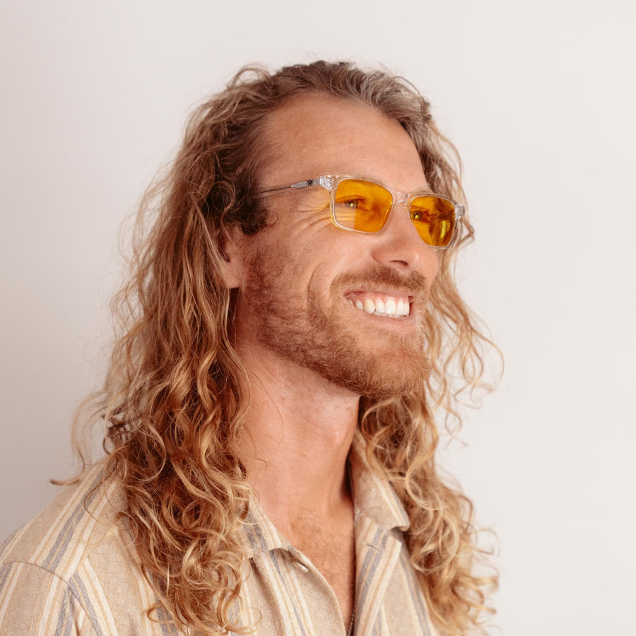 The Look: A contemporary crystal frame in a classic rectangular shape, detailed wire-core arms, and a matching saddle bridge. Like its name, the tinted color lenses really pop out, grabbing the attention they deserve.