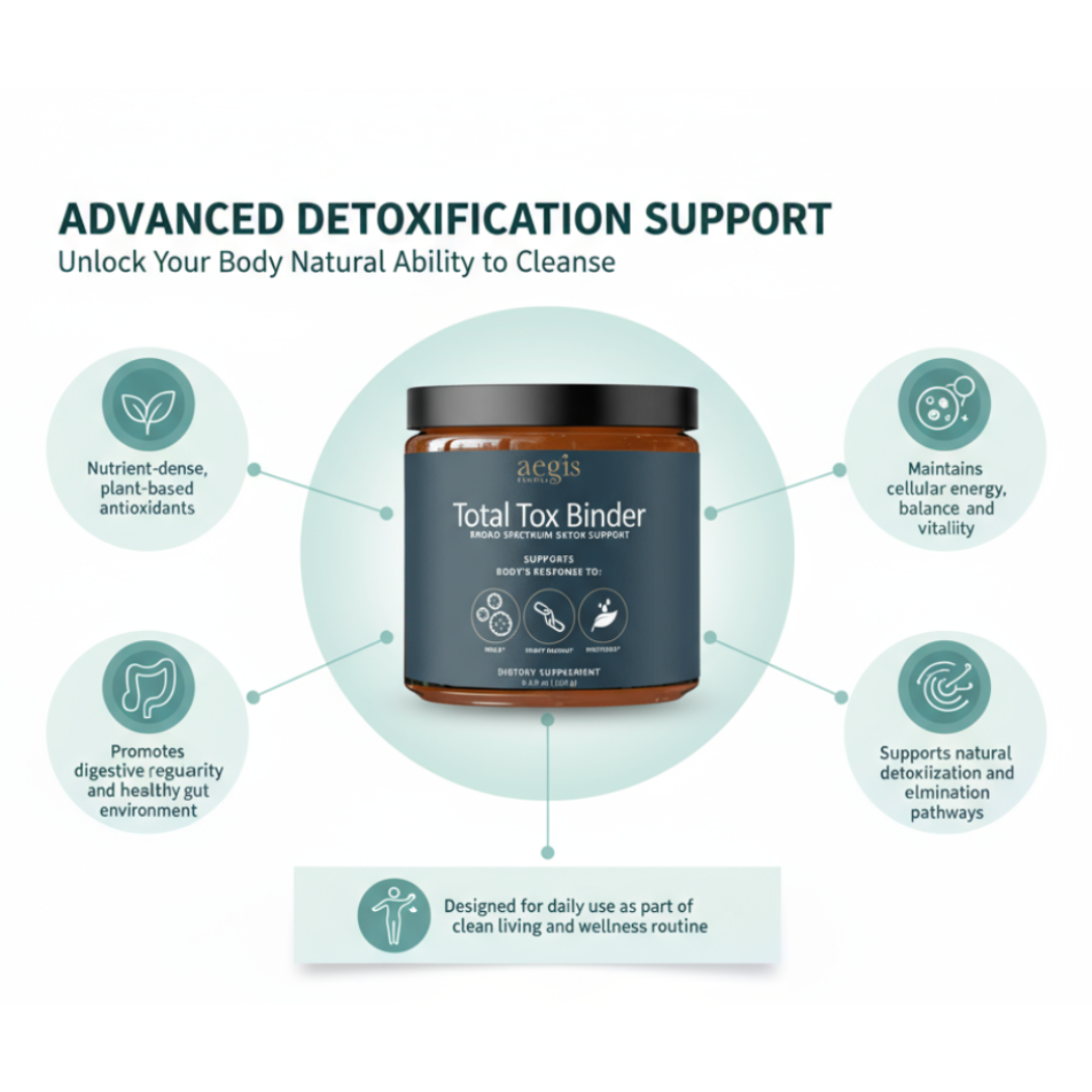 Total Tox Binder is designed to support the body’s natural detoxification and elimination pathways. Its ingredients work synergistically to help bind and remove unwanted substances such as environmental pollutants, heavy metals, mold byproducts, and other metabolic waste, supporting a cleaner internal environment and overall wellness.